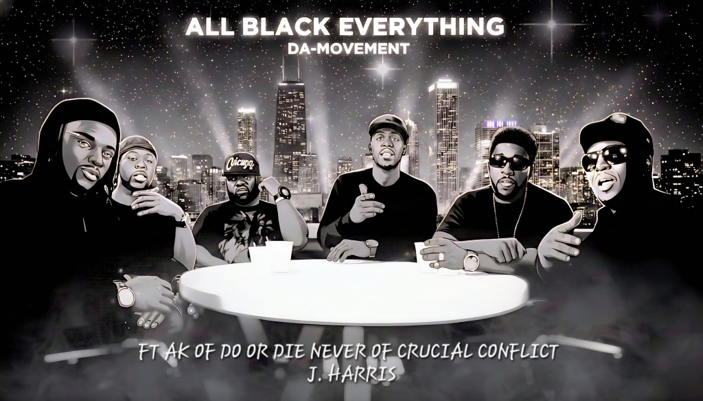 On the surface, DA Movement can be described as a hip hop group. In reality, the project operates more like a summit for some of Chicago’s most impressive artists. Their latest single, “All Black Everything” features AK of Do or Die , Never of Crucial Conflict, and J. Harris. It’s one of the latest New Arrivals to AMS Radio! The sound is larger than life, just as you would expect. Turn this one up. Needless to say, I was so stoked when their management did us a solid and sent over a radio tag from none other than Never himself. Here’s a sample of what you’ll hear in rotation: